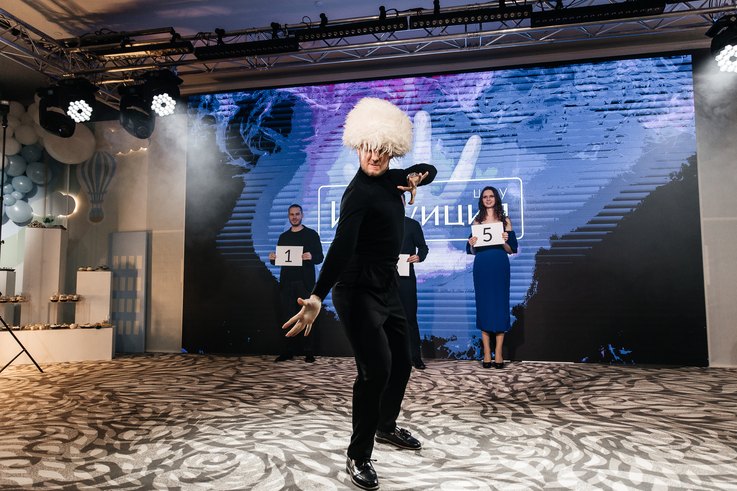 Развлекательная часть включала в себя шоу мыльных пузырей, цирковой номер с животными и шоу «Интуиция»