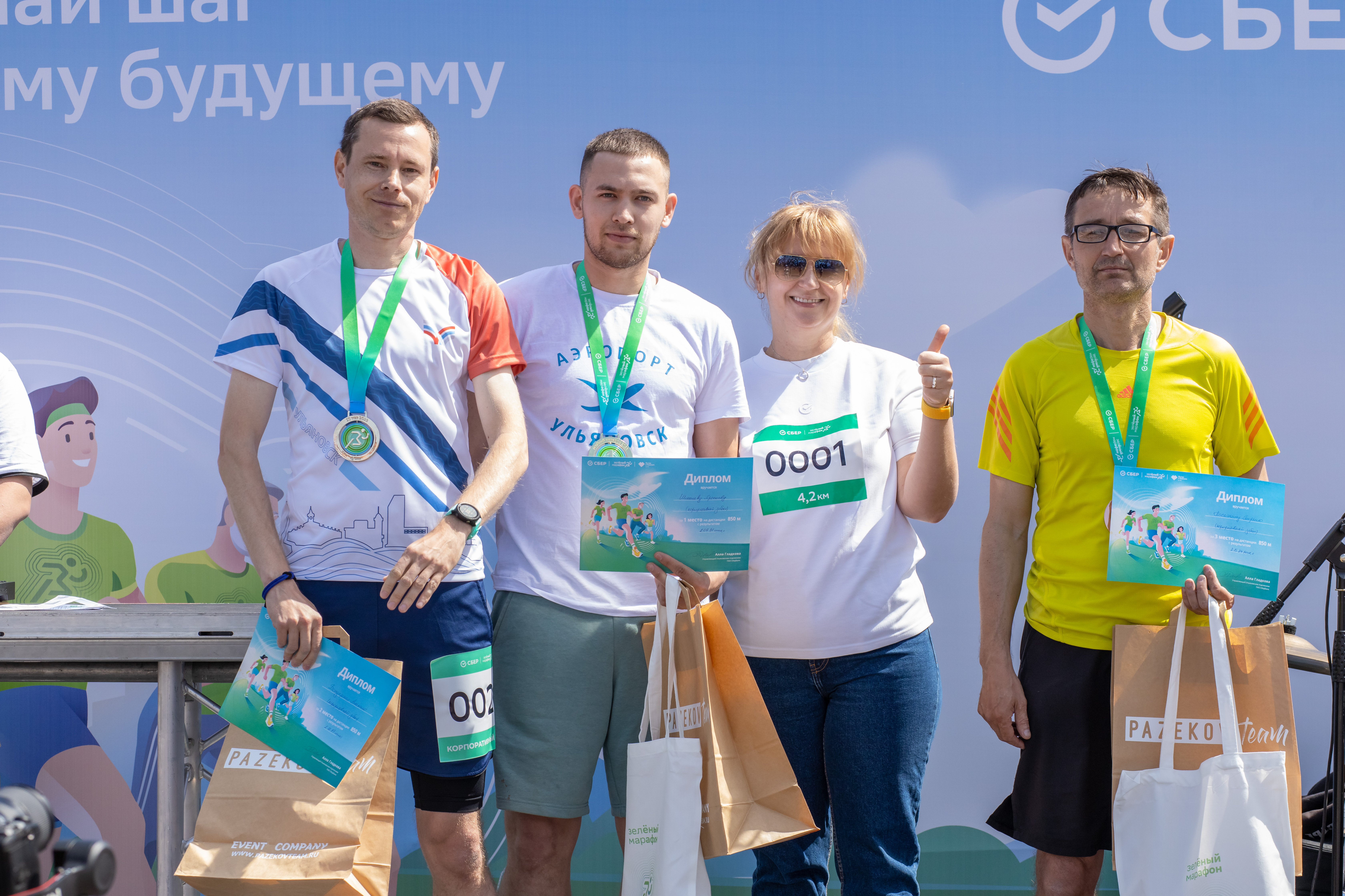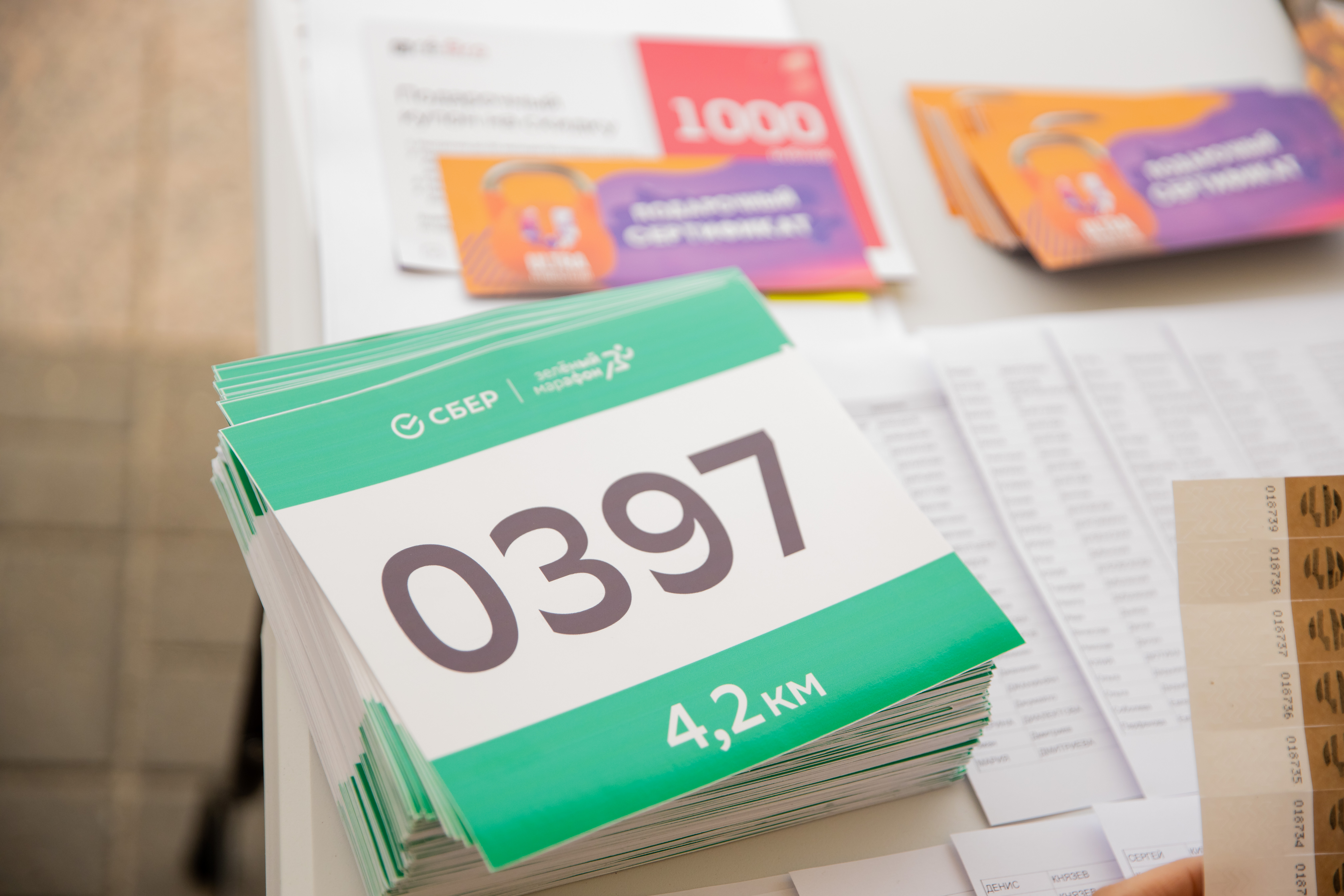 Каждый участник забега получил свой стартовый пакет: номер, подарки от Сбера и от партнеров мероприятия