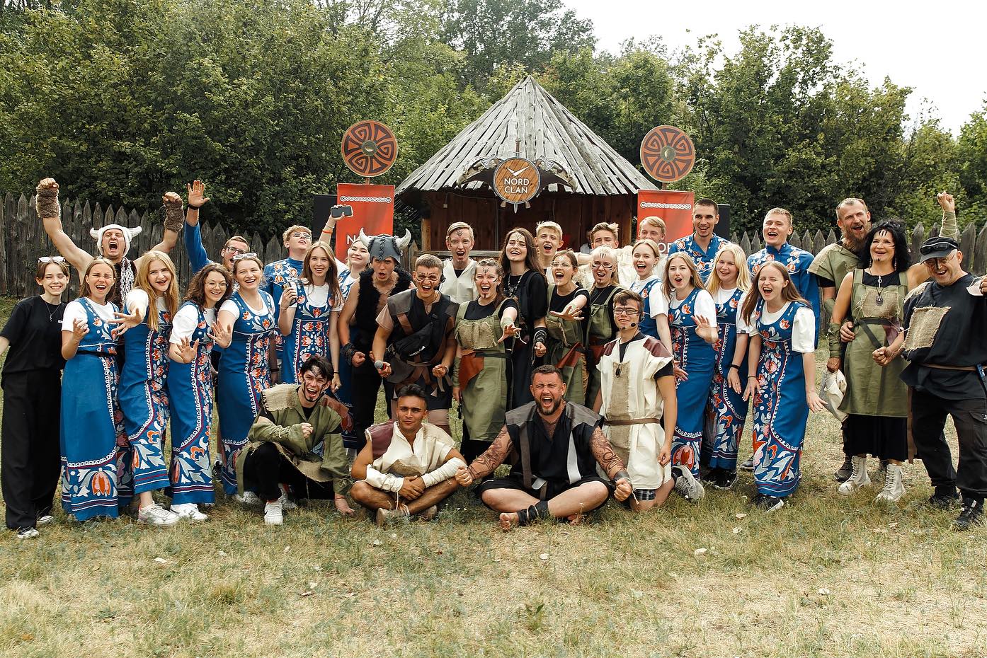 Декорации в виде боевых щитов. Суровый скандинавский раскрас для каждого из воинов. Музыка эпохи средних веков, исполняемая вживую на волынках и барабанах. И более 30 организаторов в кастомных, стилизованных под тематику викингов, костюмах