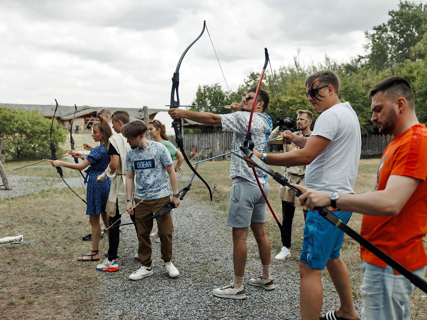 Участники потренировали свою меткость, стреляя из луков по различным мишеням в виде животных